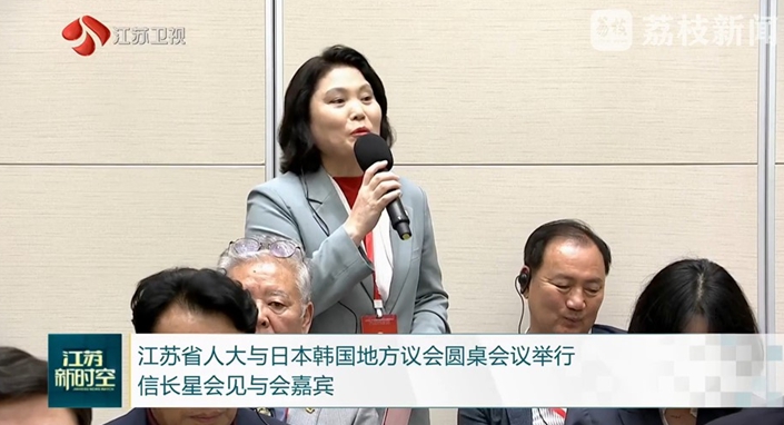 | ▲ 장쑤성 인민대표대회와 한·일 지방의회 의원 원탁회의에서 의견을 발표하는 박춘선 부위원장 |