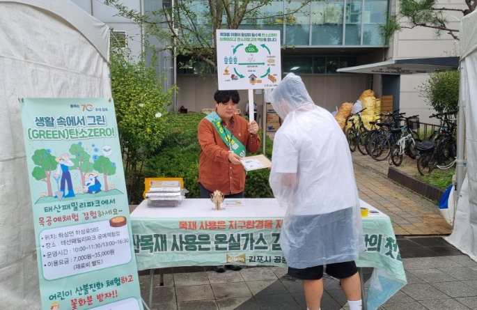 [메이저뉴스]김포시는 지난 19일 장기동 한강중앙공원에서 국산 목재 이용, 탄소중립 실현, 목재 이용 문화 정착을 촉진하기 위하여 목재이용 권장 캠페인을 개최했다.
