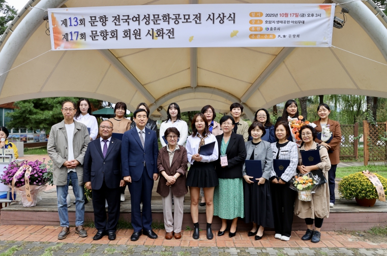 [메이저뉴스]충주 문향회(회장 안애정)에서 주최하는 ‘제13회 문향전국여성문학공모전 시상식과 제17회 문향회 시화전 개막식’이 17일 호암지 생태공원 야외무대에서 열렸다.