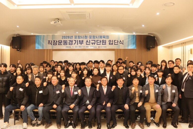 [메이저뉴스]포항시와 포항시체육회는 20일 라메르웨딩에서 ‘2026년 포항시 직장운동경기부 입단식’을 개최했다.