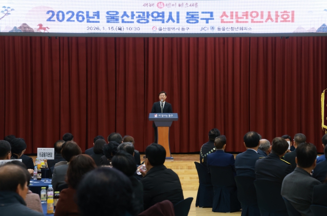 [메이저뉴스]울산 동구는 1월 15일 오전 10시 30분 동구청 2층 대강당에서 2026년 울산광역시 동구 신년 인사회를 개최했다.