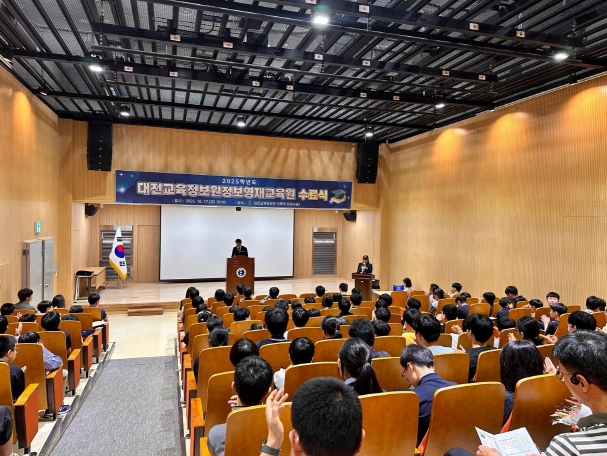 [메이저뉴스]대전교육정보원 정보영재교육원은 10월 17일 본관 다목적 강당에서 2025년 수료식을 열고 소프트웨어(SW), 로봇, 인공지능(AI) 분야의 정보 영재 교육과정을 마친 수료생들에게 수료증을 수여했다.