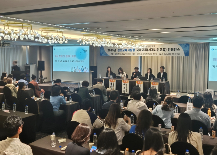 [메이저뉴스]경기도김포교육지원청은 9월 24일, 김포 마리나베이에서 『2025 김포교육지원청 국제교류협력 콘퍼런스』를 성공적으로 개최했다고 밝혔다. 이번 행사는 국내외 학교 현장의 국제교류 성공 사례와 효과적인 운영 방안을 공유하여 교원들의 국제교류 역량을 강화하고, 교육공동체 간 지속 가능한 협력 기반을 마련하기 위해 추진됐다. 이날 행사에는 김포 관내 유·초·중·고등학교 교원 100여 명이 참석해 높은 관심을 보였다.