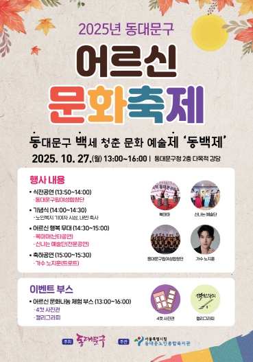 [메이저뉴스]서울 동대문구는 오는 27일 구청 2층 다목적강당에서 '2025년 동대문구 어르신 문화축제 ‘동백제’'를 개최한다고 밝혔다.