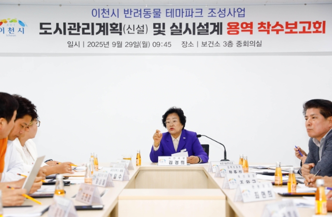 [메이저뉴스]이천시가 반려동물, 반려인과 비반려인이 함께 어울릴 수 있는 복합문화공간인 ‘반려동물 테마파크’ 조성을 본격 추진한다고 밝혔다. 시는 최근 율면 월포리 일원에 대한 설계 용역에 착수했으며, 9월 29일 착수보고회를 통하여 사업의 방향과 세부 내용을 발표하고 각계각층의 의견을 수렴했다.