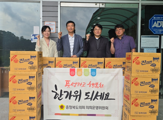 위원회를 대표해 참석한 박용규 위원장(옥천2)은 라면 등 생활필수품을 전달하며 입소자와 시설 관계자들에게 따뜻한 마음을 전했다.