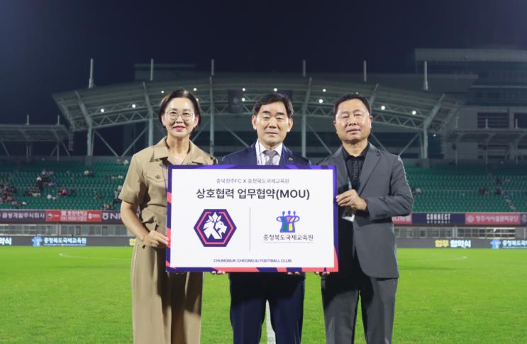 [메이저뉴스]충청북도교육청 직속기관인 국제교육원은 지난 27일 저녁, 청주종합운동장에서 충북청주프로축구단과 이주배경 학생들의 스포츠 문화체험 확대 및 협력 활성화를 위한 업무협약을 체결했다고 밝혔다.