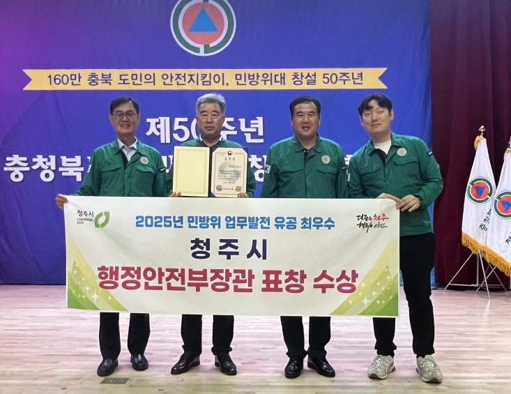 [메이저뉴스]청주시는 29일 상당구청 대공연장에서 열린 제50주년 민방위대 창설 기념행사에서 민방위 업무발전 유공으로 행정안전부 장관 표창을 수상했다.