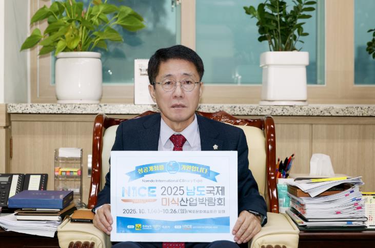 [메이저뉴스]옥천군의회 추복성 의장은 지난 21일 ‘2025 남도국제미식산업박람회 성공 개최 릴레이 응원 챌린지’에 동참했다.