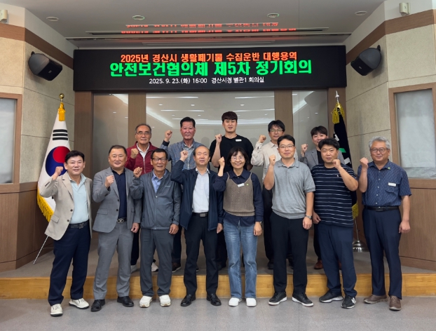 [메이저뉴스]경산시는 23일 민족 고유의 명절‘추석’을 맞아 연휴 기간에 차질 없는 생활 쓰레기 관리로 쾌적한 명절 분위기를 조성하고자 생활폐기물 수집·운반 대행업체 등 관계자 10명이 참석한 가운데 안전보건협의체 정기 회의를 개최했다.