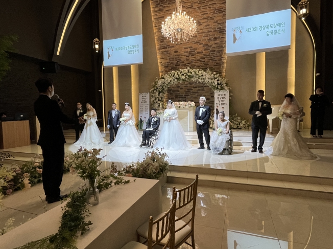 [메이저뉴스]경상북도는 한국장애인재활협회 경북협회 주관으로 22일 경북 안동 두리원웨딩홀에서 신랑·신부 5쌍과 가족, 친지, 내빈 등 120여 명이 참석한 가운데 ‘제30회 경상북도 장애인 합동결혼식’을 성황리에 개최했다.