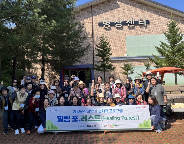 [메이저뉴스] 포항시 북구보건소 트라우마센터는 트라우마 치유와 회복을 돕기 위해 1일 경북 영주 국립산림치유원에서 ‘힐링 포,레스트(Healing Po,rest)’ 하반기 숲치유 프로그램을 진행했다.