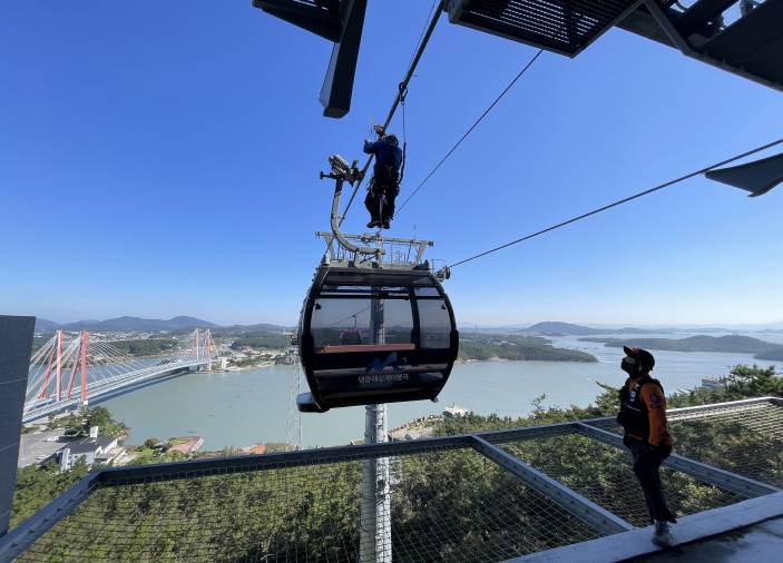 [메이저뉴스]가을여행주간을 맞이하여 전남도로 많은 가족단위 여행객들이 방문이 많아지면서 안전에 대한 관심이 높아지고 있는 가운데 명량해상케이블카는 지난 10월 20일 비상상황 대응 능력을 강화하기 위해 진도소방서와 함께 케이블카 합동 구조훈련을 실시했다.