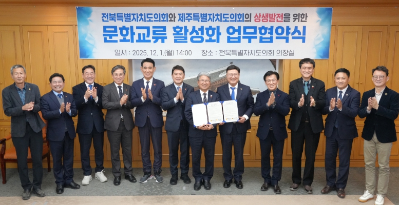 [메이저뉴스]전북특별자치도의회와 제주특별자치도의회는 문화·관광·세계유산 분야 협력을 강화하기 위해 1일 전북도의회 의장실에서 문화교류 활성화 업무협약(MOU)을 체결했다.