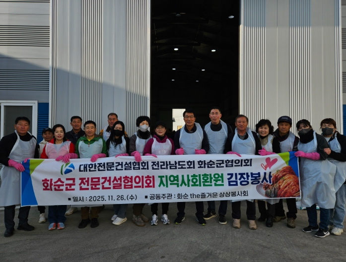 [메이저뉴스]대한전문건설협회 화순군협의회는 지난 11월 26일 '화순 the 즐거운 상상봉사회'와 함께 ‘지역사회 환원 김장김치 나눔 봉사’를 펼쳤다.