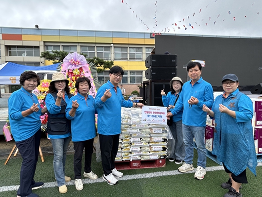 | ▲ SK바이오텍은 연동면체육대회에서 지역민을 위한 쌀을 전달하였다. |