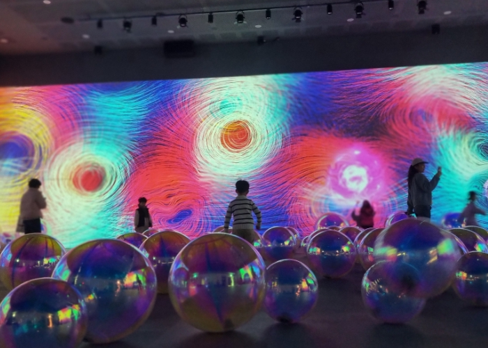 네 개의 포구는 전시를 통해 각각 고유의 빛과 감각으로 재탄생했다. 민물과 바다가 만나 만물이 조화를 이루던 전류리 포구는 찬란한 생명의 그래픽으로, 거센 물살과 파도 앞에서 자연의 겸손을 상기시키는 조강 포구는 깊고 푸른 빛으로 구현돼 눈길을 끌었다. 활발한 무역과 풍요의 시간을 품었던 강령 포구는 생동하는 디지털의 물결로, 침략과 전쟁의 아픔을 겪은 갑곶나루는 강렬한 붉은 색채의 추상 그래픽으로 재해석됐다.