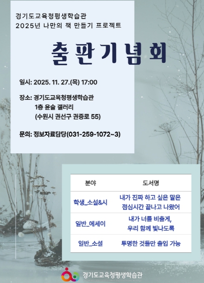 [메이저뉴스]경기도교육청평생학습관이 ‘2025년 나만의 책 만들기 프로젝트’ 출판기념회를 개최한다.