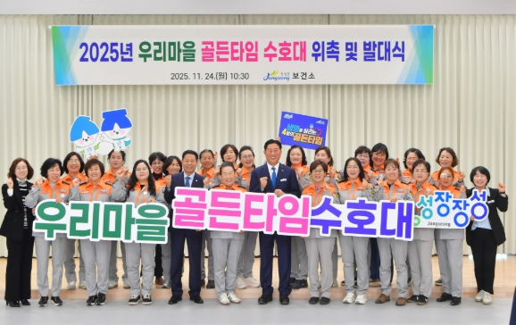 [메이저뉴스]장성군이 24일 가족행복센터에서 ‘골든타임 수호대’ 위촉식 및 발대식을 가졌다. 김한종 장성군수, 심민섭 장성군의회 의장 등이 참석해 축하와 감사 인사를 전했다.