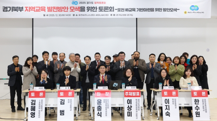 [메이저뉴스]윤충식 경기도의회 미래과학협력위원회 위원(국민의힘, 포천1)이 좌장을 맡은 '경기북부 지역교육 발전방안 모색'을 위한 토론회가 12월 30일 포천비즈니스센터 세미나실(2층)에서 개최됐다. 본 토론회는 경기도와 경기도의회가 공동으로 주최하는 ‘2025 경기도 정책토론회’의 일환으로 개최됐다.