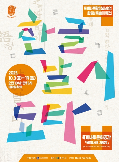 충주문화관광재단 관계자는 “목계나루에서 만나는 이번 전시는 시민의 일상과 감성을 한글로 담아낸 특별한 자리”라며, “앞으로도 지역의 문화자원과 예술적 상상력을 결합한 다양한 프로그램을 이어갈 것”이라고 전했다.
