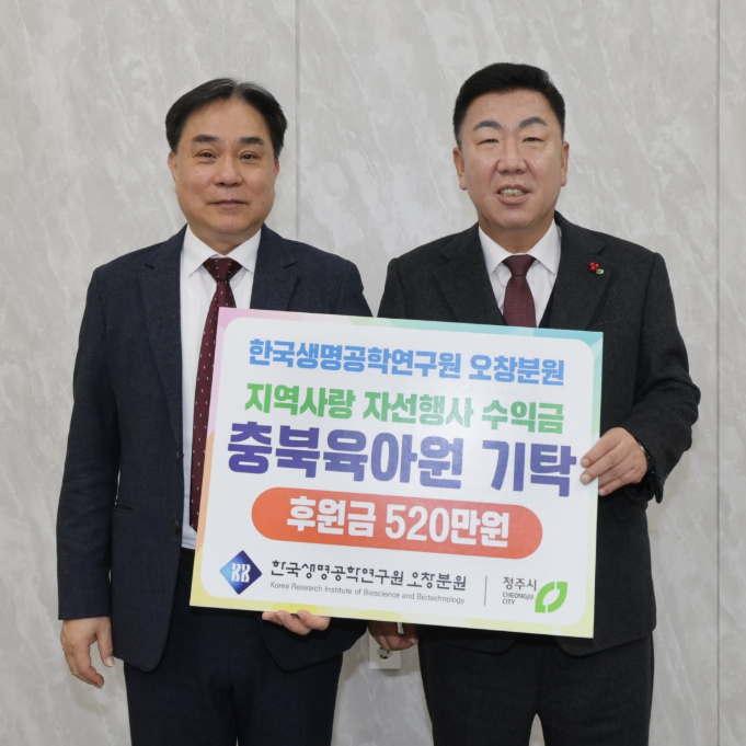 [메이저뉴스]한국생명공학연구원 오창분원은 30일 청주지역 아동양육시설 보호아동을 위해 사용해 달라며 청주시에 자선행사 수익금 520만원을 기탁했다.