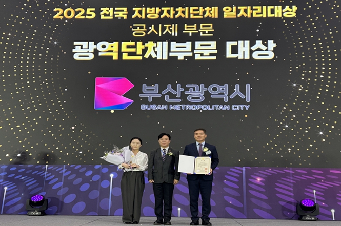 [메이저뉴스]부산시는 오늘(30일) 오후 2시 청주오스코에서 열린 '2025 전국 지방자치단체 일자리대상' 시상식에서 '공시제 부문' 광역단체 대상(국무총리상)과 '우수사업 부문' 우수상(장관상)을 각각 수상했다고 밝혔다.