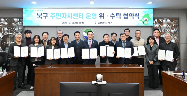 [메이저뉴스]울산 북구는 30일 구청 상황실에서 8개 동 주민자치회와 주민자치센터 운영 위·수탁 협약을 체결했다.