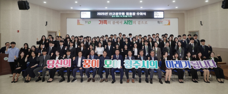 이 시장은 “오늘의 주인공은 신규공무원 여러분이지만, 이 자리를 함께해주신 가족분들이야말로 진정한 동반자이자 버팀목”이라며 “청주시민들의 행복을 최우선으로 하는 열정 있고 따뜻한 공직자가 되어달라”고 당부했다.