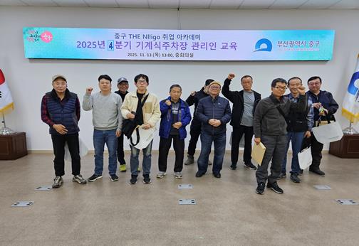 [메이저뉴스]부산 중구는 지난 13일 ‘2025년 중구 THE Nlligo 취업아카데미 기계식주차장 관리인 교육’ 4분기(신규) 교육 과정에서 13명의 수료생을 배출했다.