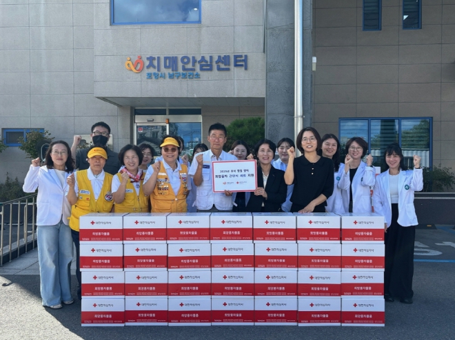 | ▲ 포항시 남구보건소 치매안심센터는 29일 대한적십자사 경상북도지사 동부봉사관으로부터 후원받은 ‘희망풍차’ 기탁 물품을 치매 어르신 가정에 전달했다. |