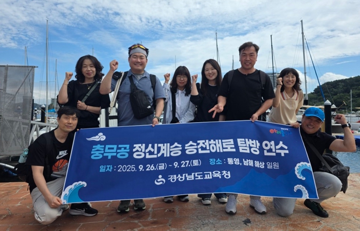 이번 연수는 경남교육청의 ‘충무공 정신계승 5개년 기본계획’에 따라 추진됐으며 ‘충무공 이순신 정신계승 전담팀(TF)’에 소속된 교사들이 참여했다. 참가자들은 통영~남해~통영을 잇는 승전해로를 따라 소형 선박으로 이동하며 전문 해설가의 안내로 노량해전의 주요 격전지를 탐방했다.