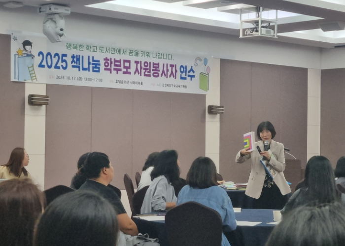 [메이저뉴스]경상북도구미교육지원청은 10월 17일 호텔 금오산 별관 1층 사파이어홀에서 구미지역 초・중 학교도서관 학부모자원봉사자 50여 명을 대상으로 책나눔 학부모자원봉사자 역량 강화 연수를 실시했다.