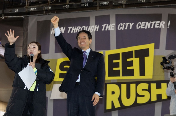 [메이저뉴스]이동환 고양특례시장이 지난 15일 열린 ‘2025 고양 스트릿 러쉬 in 라페스타’에서 “불빛과 사람이 가득한 도심 속을 시원하게 질주하며 열정 가득한 순간을 만끽하길 바란다”고 말하고, 선수들의 레이스를 관람하며 응원을 보냈다.
