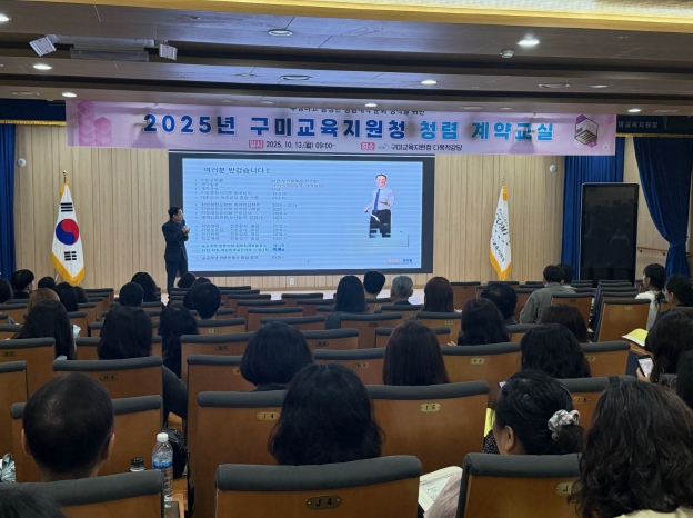 [메이저뉴스]경상북도구미교육지원청(교육장 민병도)은 10월 13일 구미교육지원청 신청사 1층 다목적강당에서 관내 학교 계약업무 담당자를 대상으로 ‘2025년 구미교육지원청 청렴 계약교실’ 연수를 실시했다.