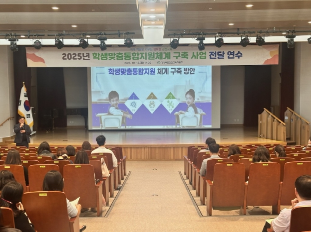 [메이저뉴스]경상북도 김천교육지원청은 10월 13일 월요일, 김천학생문화예술센터 드림마루에서 관내 52개 초‧중‧고등학교 행정실장 및 업무담당자를 대상으로 2025년 학생맞춤통합지원체계 구축을 위한 전달 연수를 개최했다.