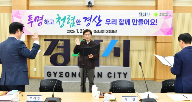 [메이저뉴스]경산시는 23일 경산시청 대회의실에서 2026년 간부 공무원 반부패·청렴실천 결의대회를 개최했다.