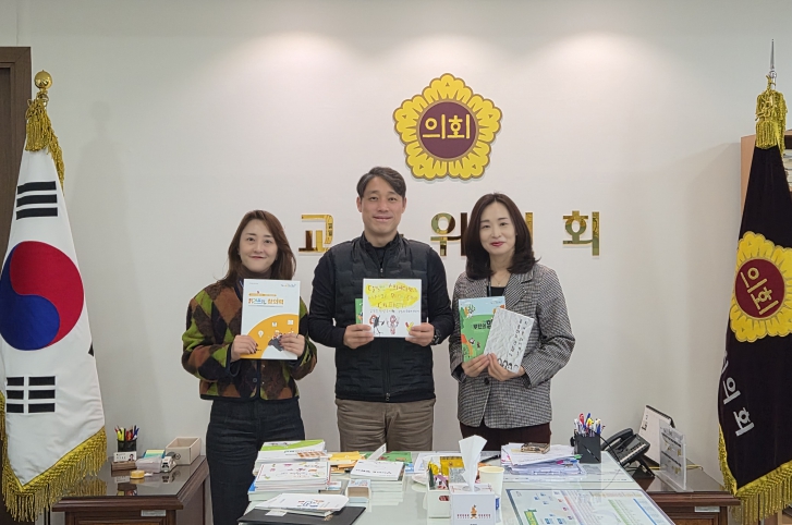 이날 간담회에서는 이용창 교육위원장은 학생들의 습관 형성을 위한 ‘루틴 챌린지’ 포도알 스티커, 교사들을 위한 수업과정 구성 책자, 아이들이 직접 읽걷쓰 프로그램에 참여하여 만든 그림책, 사업 팜플렛 등교육 현장에서 실제로 사용되는 다양한 읽걷쓰 자료를 직접 살펴보았다.