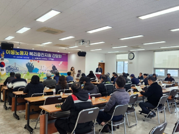 [메이저뉴스]포항시는 지난 26일 상대동 행정복지센터 회의실에서 ‘이동노동자 복리증진지원 간담회’를 열고 지역 내 이동노동자의 근무환경 개선과 복지 확대 방안을 논의했다.