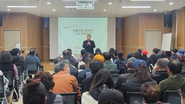 이번 교육은 자활근로사업 참여자들의 자활 의지를 키우고 자립을 위한 경제적·조직적 역량을 높여 사회 적응훈련에 도움을 주고자 마련됐다.