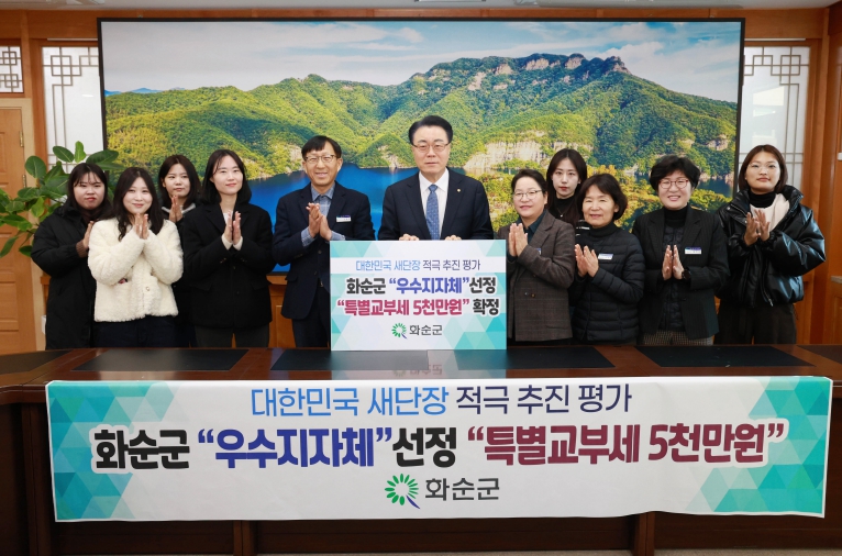 [메이저뉴스]화순군은 지난 24일 행정안전부가 주관한 ‘대한민국 새단장’ 캠페인 추진실적 평가에서 우수 지자체로 선정돼 특별교부세 5천만 원을 확보했다고 밝혔다.