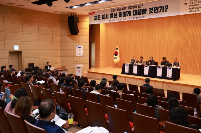 [메이저뉴스]울산 동구는 10월 24일 오후 2시 동구청 5층 중강당에서 ‘트럼프 정부 관세 압박과 현지 투자 강요, 제조 도시 어떻게 대응할 것인가?’란 주제로 기획토론회를 개최했다.