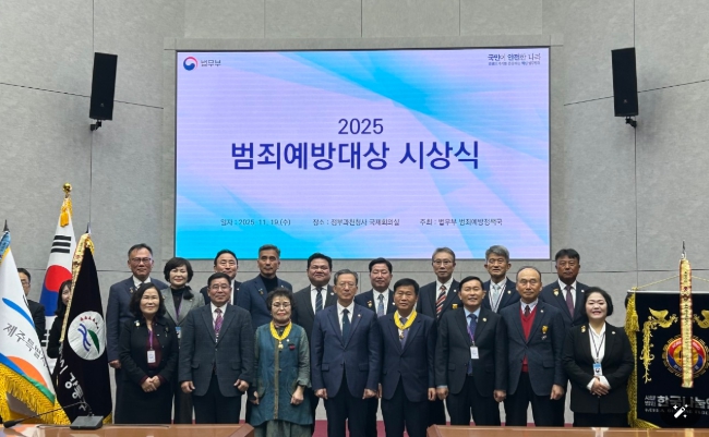 [메이저뉴스]제주특별자치도가 도민 참여형 범죄예방 정책의 우수성을 인정받아 법무부 주관 ‘2025 범죄예방대상’ 국무총리 표창을 19일 받았다.
