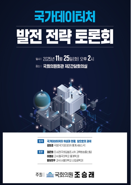 [메이저뉴스]조승래 의원(대전 유성갑, 더불어민주당)이 오는 25일 오후 2시, 국회 의원회관 제2간담회의실에서 ‘국가데이터처 발전 전략 토론회’를 개최한다.