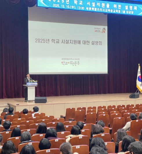 [메이저뉴스]세종특별자치시교육청 학교지원본부는2026년 사업계획을 앞두고 학교 시설공사에 대한 업무 부담을 줄이고 이용자의 의견을 수렴하기 위해 추진하는 ‘학교 시설지원사업’ 설명회를 152개 초중고 학교를 대상으로 12월 10일에 세종시교육청교육원에서 개최했다.