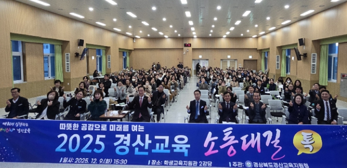 [메이저뉴스]경상북도경산교육지원청은 12월 9일 경산교육지원청 학생교육지원관 2강당에서 경산시장 및 도의회 의원, 관내 유․초․중․고등학교 교(원)장, 학교운영위원장, 학부모회장, 녹색어머니회, 학생상담자원봉사자, 주민감사관 및 공약이행단 대표, 교육계 원로 등 경산 교육가족 220여 명을 초청하여 ‘교육감과 함께하는 2025 경산교육 소통대길 톡’을 개최했다.