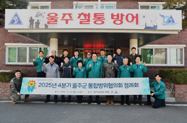 | ▲ 울산 울주군이 22일 제7765부대 1대대에서 울주군 지역방위태세 확립을 위한 ‘2025년 4분기 울주군 통합방위협의회 정례회’를 개최한 가운데 이순걸 군수와 각 기관·단체의 기관장 및 관계자들이 기념촬영을 하고 있다. |