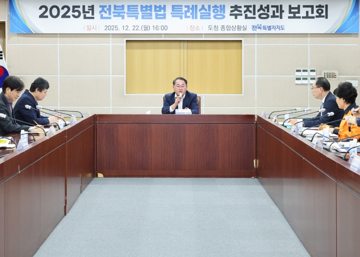 전북도는 22일 김종훈 경제부지사 주재로 ‘2025년 전북특별법 특례 실행 추진성과 보고회’를 열고, 특별법 시행 이후 1년간의 추진 성과를 종합 점검하고 향후 추진 방향을 논의했다.