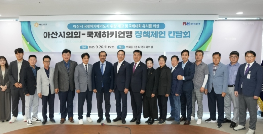 이번 간담회는 국제하키연맹 회장의 아산 방문에 맞춰 마련된 자리로, 홍성표 의장과 맹의석 부의장을 비롯해 기획행정농업위원회 명노봉 부위원장, 이기애 의원, 김희영 의원, 천철호 의원이 함께했다. 참석자들은 하키 메카의 도시로 자리매김한 아산시의 위상 강화와 세계대회 유치 가능성에 대한 다양한 의견을 나눴다.
