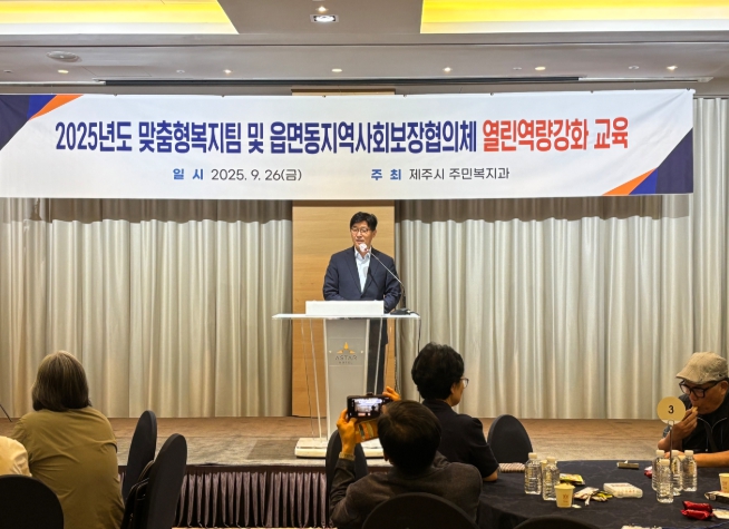 [메이저뉴스]현원돈 제주시 부시장은 9월 26일 아스타호텔에서 열린 ‘2025년도 맞춤형복지팀 및 읍면동지역사회보장협의체 역량강화’ 교육에 참석해 관계자들을 격려했다.